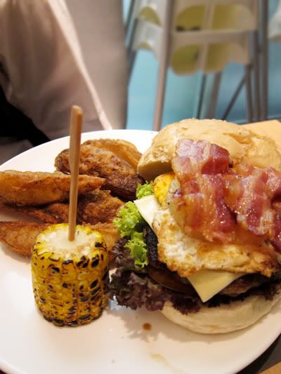 Next was the Pork Burger with bacon strips, egg, cheese and pineapple. Feedback was that it wasn’t good. I guess the meat patty wasn’t juicy enough and it was slightly bland. If you see on the pic, the cheese should melt from the heat of the patty but it didn’t which was a turn down because melting cheese in burgers are suppose fantabulously-melting!