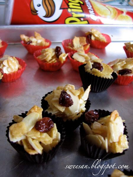 I know, Raya is just over and everyone is probably sick and tired of cookies already. But let me tell you, this will tickle your taste buds. Have u seen the cornflakes + honey cookies ? I replaced the cornflakes with pringles lol.. check it out.
