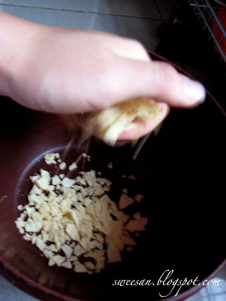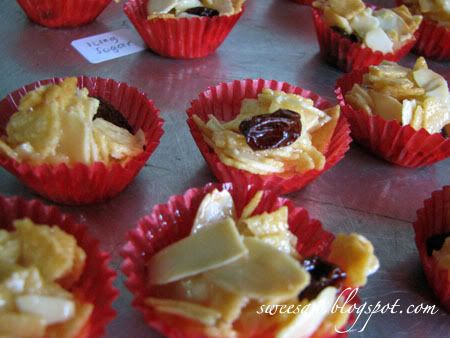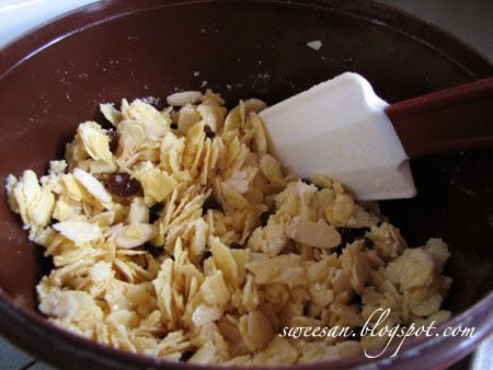 Step 3: Crush crush crush!! Add in the rest of ingredients like roasted almond slices and some raisins. It can be subsitute with real cornflakes..