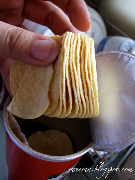 Step 2: Take out some pringles from the can. Original flavour is okay, but Maybe .. MAYBE the bbq flavour might work out too. hehe
